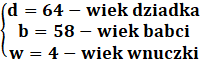 Dwa lata temu dziadek miał o 4 lata więcej niż babcia i wnuk razem.
