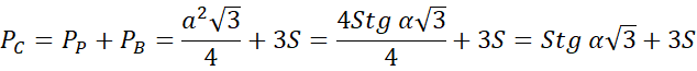 Oblicz pole powierzchni całkowitej tego ostrosłupa, jeśli miara kąta między ramionami ściany bocznej ostrosłupa prawidłowego trójkątnego wynosi