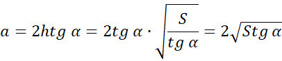 Skorzystaj z funkcji tangens, aby wyznaczyć długość krawędzi podstawy. Następnie ze wzoru na pole trójkąta wyznacz długość wysokości ściany bocznej i oblicz pole powierzchni całkowitej ostrosłupa.