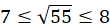 Pierwiastek z 55 jest większy od pierwiastka z 49, czyli liczby 7 i mniejszy od pierwiastka z 64, czyli liczby 8.