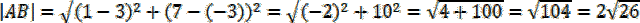 Skorzystaj ze wzoru na długość odcinka w układzie współrzędnych: