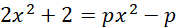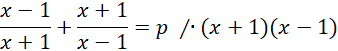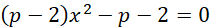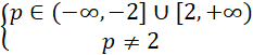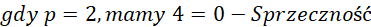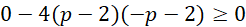 Zapisujemy założenia i przemnażamy obustronnie przez mianowniki ułamków. Sprowadzamy wyjściowe równanie do równoważnego równania kwadratowego, które ma mieć rozwiązanie, czyli delta musi być nieujemna. Zauważmy, że współczynnik przy najwyższej potędze jest również zależny od parametru p zatem musimy dodatkowo rozważyć, co się dzieje, kiedy równanie z kwadratowego stanie się równaniem liniowym. Dzieje się tak dla p=2 i otrzymujemy wówczas 4=0 co jest oczywistą sprzecznością.