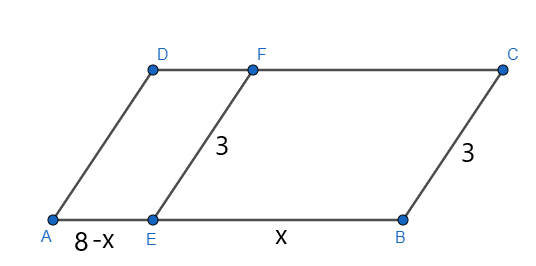 Równoległobok o bokach długości 3 i 8 został podzielony na dwa podobne do siebie równoległoboki. W tym zadaniu musisz obliczyć długości boków tych równoległoboków.