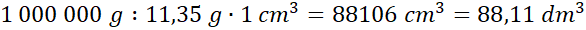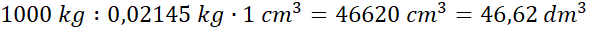 Podziel tonę przez masę 1 cm3 substancji, a następnie wynik pomnóż przez 1 cm3.