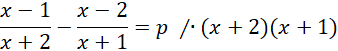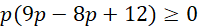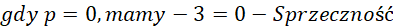 Zapisujemy założenia i przemnażamy obustronnie przez mianowniki ułamków. Sprowadzamy wyjściowe równanie do równoważnego równania kwadratowego, które ma mieć rozwiązanie, czyli delta musi być nieujemna. Zauważmy, że współczynnik przy najwyższej potędze jest również zależny od parametru p zatem musimy dodatkowo rozważyć, co się dzieje, kiedy równanie z kwadratowego stanie się równaniem liniowym. Dzieje się tak dla p=0 i otrzymujemy wówczas -3=0 co jest oczywistą sprzecznością.