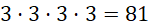W każdym z czterech rzutów wypadła dowolna z trzech wartości. Ilość takich rzutów dla tego przypadku: