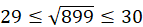 Pierwiastek z 899 jest większy od pierwiastka z 841, czyli liczby 29 i mniejszy od pierwiastka z 900, czyli liczby 30.