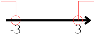 x > 3 ∨ x < -3