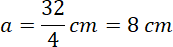 Wiadomo, że obwód rombu wynosi 32 cm. Oblicz bok rombu: