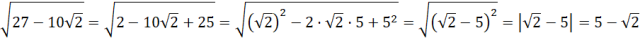Zauważ, że liczbę pod pierwiastkiem możesz rozpisać w ten sposób, aby dało się ją zwinąć za pomocą wzoru skróconego mnożenia: