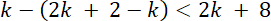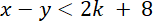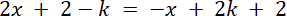, dla których wykresy funkcji liniowych f(x) = 2x + 2 - k oraz g(x) = - x + 2k + 2 przecinają się w punkcie, którego współrzędne (x, y) spełniają warunek x - y < 2k + 8.