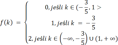 . W tym zadaniu musisz napisać wzór funkcji f, która każdej liczbie rzeczywistej k przyporządkowuje liczbę rozwiązań tego równania.