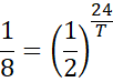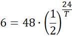 Wyznacz okres połowicznego rozpadu tego izotopu, jeśli masa próbki izotopu promieniotwórczego pewnego pierwiastka wynosiła 48 gramów, a po 24 dniach zmniejszyła się do 6 gramów.