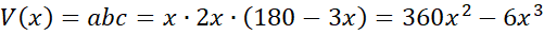 Na podstawie podanej sumy krawędzi wyznacz długość wysokości oraz oblicz dziedzinę. Następnie pod wzór na objętość prostopadłościanu podstaw znane wartości, zauważ, że powstanie funkcja zmiennej