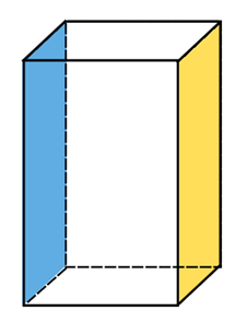 W tym zadaniu przerysuj podany prostopadłościan i zaznacz kolorem niebieskim ścianę równoległą do żółtej.