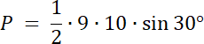 Skorzystaj z twierdzenia na pole trójkąta, które uwzględnia sinus kąta w trójkącie i oblicz to pole.