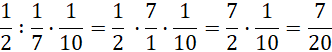 Gdy w wyrażeniu występują działania o tej samej ważności, wykonuj je od lewej do prawej strony. Zastąp dzielenie, mnożeniem przez odwrotność drugiego ułamka. Mnóż ze sobą liczniki oraz mianowniki.