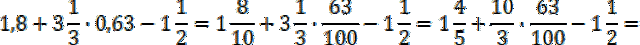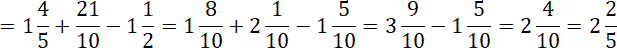 Przepisz liczby całości, a w miejsce liczb po przecinku wstaw ułamek zwykły: w liczniku wpisz liczbę, która stała po przecinku, a w mianowniku – jedynkę i tyle zer, ile miejsc po przecinku miała liczba dziesiętna. Pamiętaj o kolejności wykonywania działań: najpierw mnożenie, a potem dodawanie i odejmowanie. Przed wykonaniem mnożenia zapisz liczbę mieszaną jako ułamek niewłaściwy, skracaj czynniki, gdy to możliwe. Przed wykonaniem dodawania i odejmowania, sprowadź liczby do wspólnego mianownika. Wynik przedstaw w najprostszej postaci.