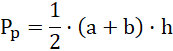 Objętość graniastosłupa możesz obliczyć, znając powierzchnię pola podstawy oraz wysokość bryły. Mnożysz wtedy te dwie wielkości i otrzymujesz objętość. W tym przykładzie podstawą graniastosłupa jest trapez, a więc jego pole podstawy obliczysz, używając wzoru na pole podstawy trapezu, czyli