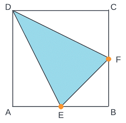 Narysuj siatkę ostrosłupa według instrukcji narysuj kwadrat ABCD. Zaznacz punkt E, który jest środkiem boku AB, i punkt F, który jest środkiem boku BC. Narysuj odcinki EF, ED i FD.