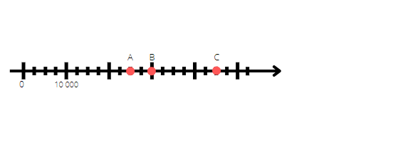 Musisz zaznaczyć na osi liczbowej punkty A = 25 000, B = 30 000, C = 45 000.