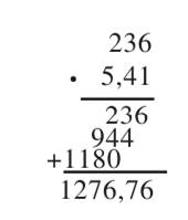 Pomnóż liczbę dziesiętną i naturalną sposobem pisemnym, czyli zapisz liczby tak jak w przypadku mnożenia pisemnego. Przecinek w wyniku zapisz, w tym samym miejscu, w jakim znajduje się w liczbie dziesiętnej.