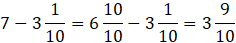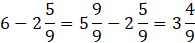 Zapisz liczbę całkowitą (6 i 7) w postaci ułamka, o takim samym mianowniku jak ułamek, a następnie odejmij od siebie te liczby – osobno części całkowite i ułamkowe.