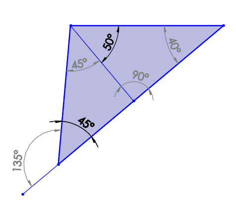 Suma kątów w trójkącie to zawsze 180°, dzięki czemu możesz obliczyć wartość trzeciego kąta. Jest równa 180° - 45° – 90° = 45°.