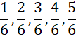 Wypisz ułamki właściwe, które mają w mianowniku liczbę 6.