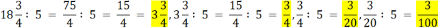 , a następnie taki, w którym jest wynik dzielenia liczby w rzędzie wyżej przez 5.
