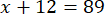 Najpierw do x dodaj 12, a otrzymaną sumę przyrównaj do 89: