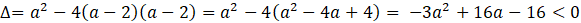 Aby funkcja odpowiadająca lewej stronie nierówności przyjmowała tylko wartości ujemne (wówczas nierówność będzie tożsamościowa) muszą zachodzić następujące warunki: