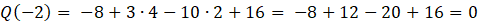 | -2 | 1 | -2 + 3 = 1 | -2 + 10 = 8 | -16 + 16 = 0 |