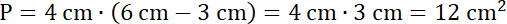Pamiętaj, w równoległoboku boki leżące naprzeciwko siebie mają taką samą długość. Oblicz brakujący bok prostokąta, odejmując od długości boku równoległoboku 3 cm. Pole zamalowanej figury to iloczyn wyliczonej długości i drugiego boku, czyli wysokości równoległoboku.