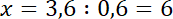 Skorzystaj ze wskazówki. Liczba 0,6 razy większa od x daje 3,6, więc liczba 0,6 razy mniejsza od liczby 3,6 jest równa szukanej wartości x.