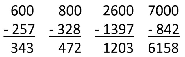 Na początku musisz zapisać pod sobą odpowiednie wartości. Następnie musisz odjąć od siebie liczby znajdujące się w tej samej kolumnie, aby otrzymać wynik, pamiętając, że jeśli od mniejszej liczby odejmujemy większą, wówczas musisz „pożyczyć” wartość dziesiątek z sąsiedniej różnicy (np. jeśli odejmujemy 2 od 3, wówczas trzeba „pożyczyć” wartość dziesiątek, co daje odejmowanie 12 – 3 oraz zmniejszenie liczby, od której została „pożyczona” wartość o 1).