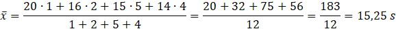 Średni czas biegu dziewcząt wynosi zatem 15,25 s.
