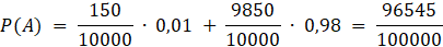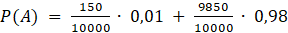 W tym zadaniu musisz obliczyć prawdopodobieństwo zdarzenia, że test wykonany na losowej osobie z pewnego regiony wykluczy u niej chorobę, jeśli test wskazuje dobry wynik w 99% przypadków dla osób chorych i w 98% przypadków dla osób zdrowych, a w tym regionie średnio 150 na 10 000 osób jest chorych na tę chorobę.