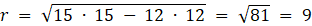 W tym zadaniu musisz obliczyć pole powierzchni całkowitej stożka o tworzącej długości 15 cm i wysokości długości 12 cm.