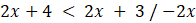 Aby rozwiązać to zadanie, na początku oblicz podane 3 nierówności, przenosząc wszystkie wartości z „x” na jedną stronę nierówności, natomiast liczby na przeciwną stronę. Zauważ, że druga z podanych nierówności jest niezależna od zmiennej x oraz 5 jest zawsze większe od 1. Natomiast trzecia nierówność jest sprzeczna, gdyż 4 nigdy nie jest mniejsze od 3.