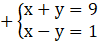 Aby łatwo znaleźć liczby spełniające układ równań, możesz zastosować metodą przeciwnych współczynników, ponieważ widać, że przy y mamy przeciwne współczynniki, więc dodając obie strony oby dwu równań do siebie redukujemy y. A następnie dodajemy do siebie wyrażenia z x i wyrażenia wyrazów wolnych. W prosty sposób obliczamy w pamięci, że x=5 i podstawiając do dowolnego równania za x 5 obliczamy y.