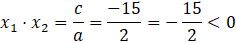 Iloczyn rozwiązań równania jest ujemny, czyli rozwiązania mają przeciwne znaki.
