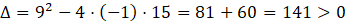 , więc możemy policzyć jego rozwiązania za pomocą wyróżnika równania kwadratowego