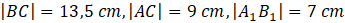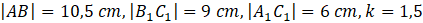 Oblicz odpowiadające boki w trójkątach podobnych korzystając ze skali podobieństwa.