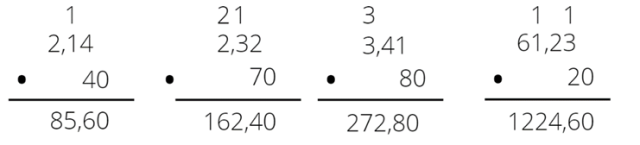 Wykonując mnożenie pomiń zero. Następnie dopisz zero w wyniku pod kreską. Wszędzie muszą być dwie liczby po przecinku, tak, jak w czynniku.