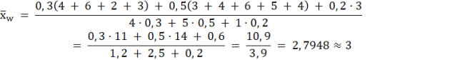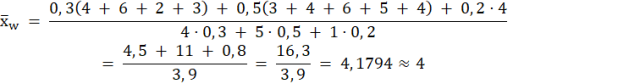 Skorzystaj ze wzoru na średnią ważoną i oblicz ocenę Stefana w 1 i 2 semestrze.