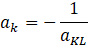Skoro prosta k jest prostopadła do prostej KL, to współczynnik kierunkowy prostej ak wyraża się wzorem: