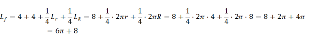 Zauważ, że obwód wskazanej figury jest sumą dwóch odcinków o długości 4 oraz dwóch ćwiartek okręgów o promieniach r i R.