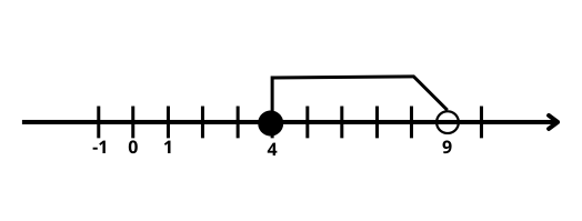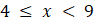 Do tego zbioru liczb należą wszystkie liczby x większe lub równe 4 oraz mniejsze od 9.