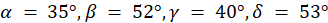 Oblicz miary kątów α, β, γ i δ.